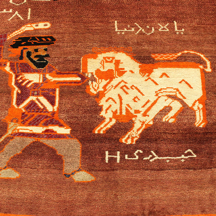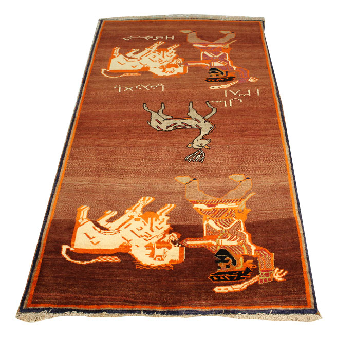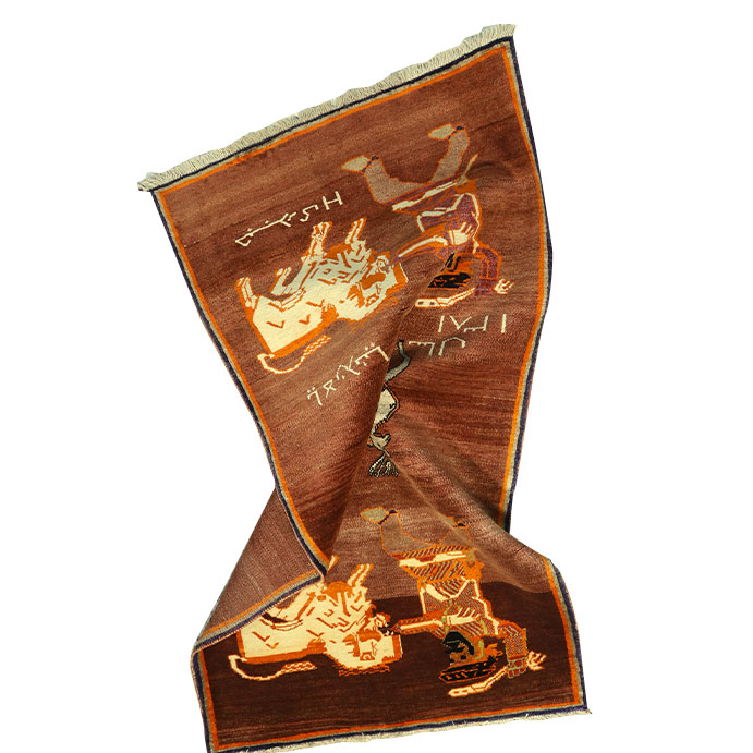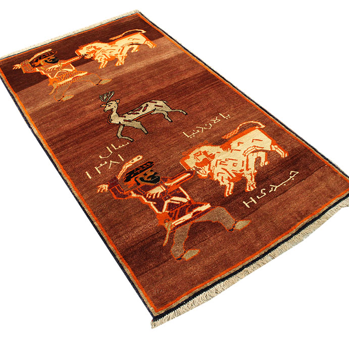 کد گبه دستبافت :1621-گبه دستبافت با نقشه تصویری به شکل مستطیل و در ابعاد 187 سانتیمترمربع و عرض 102 سانتیمترمربع بافته شده است.