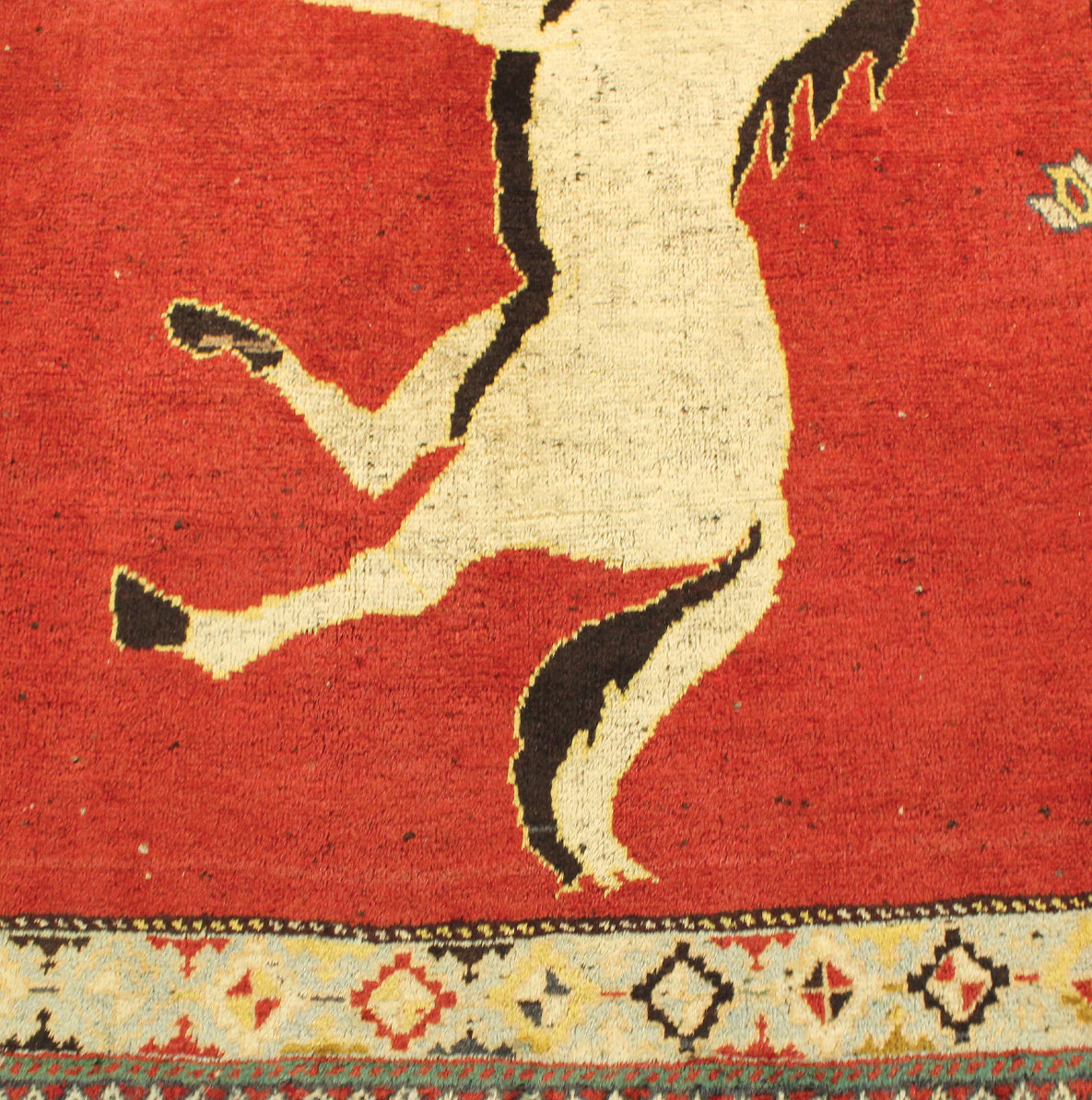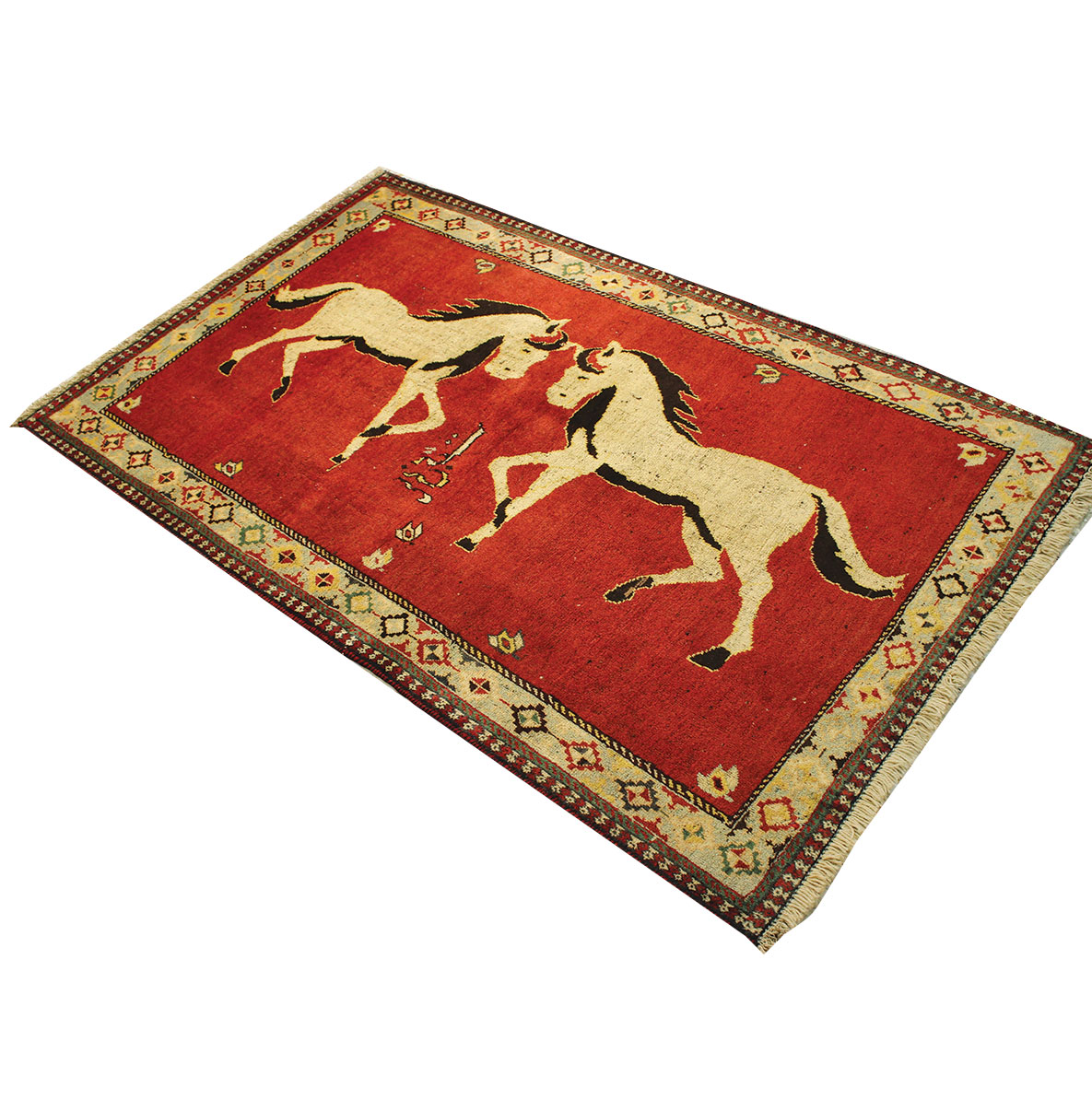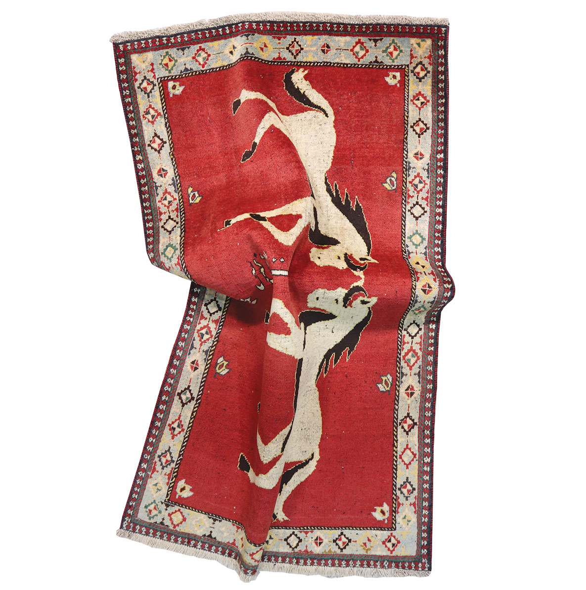 کد گبه دستبافت :1366-گبه دستبافت با نقشه تصویری به شکل مستطیل ودر ابعاد 177 سانتیمترمربع و عرض 104 سانتیمترمربع بافته شده است.