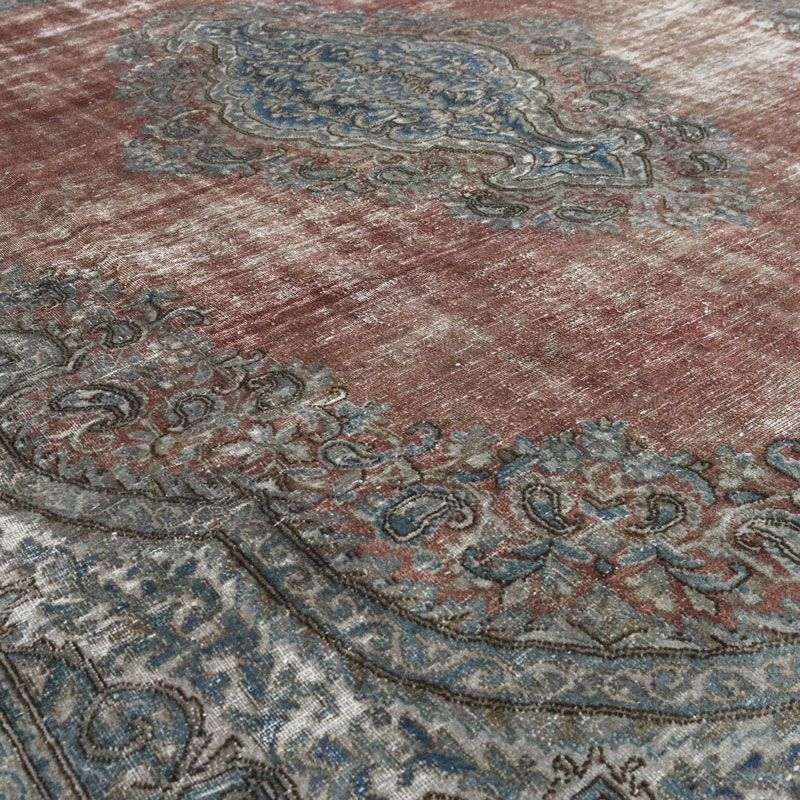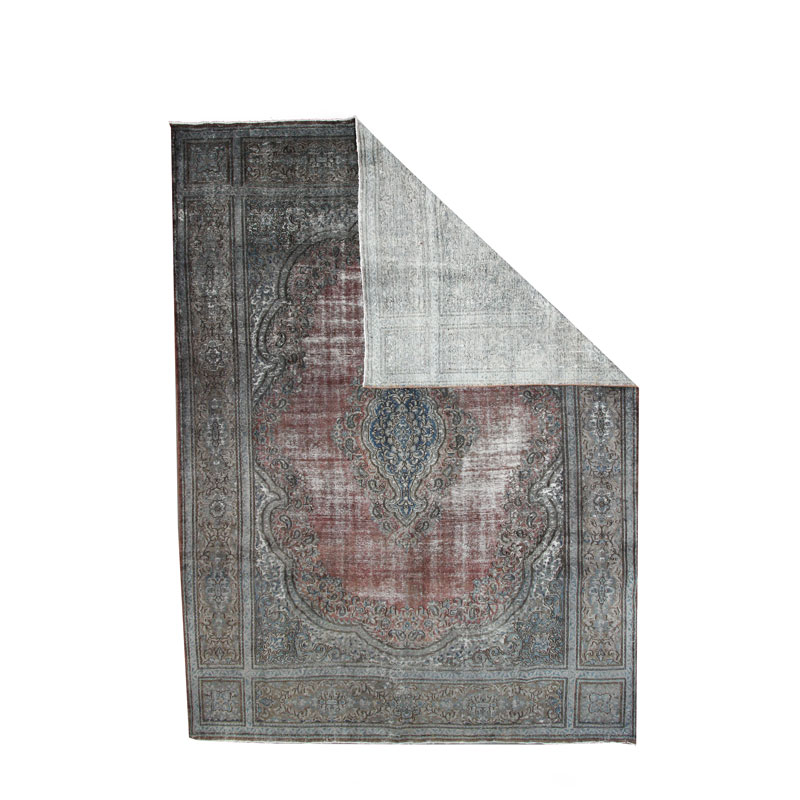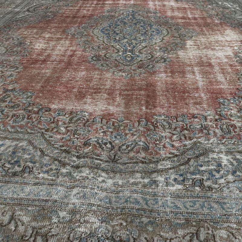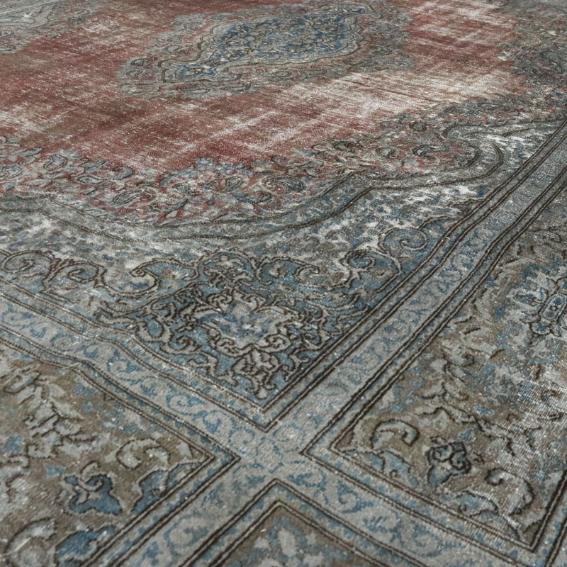 قالی وینتیج دستبافت دودی قرمز (295×402) سانتیمتر با رنگ زمینه دودی و قرمز و مساحت 11.8 مترمربع و وزن 41.5 کیلوگرم است.