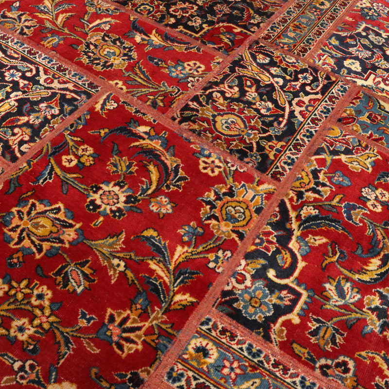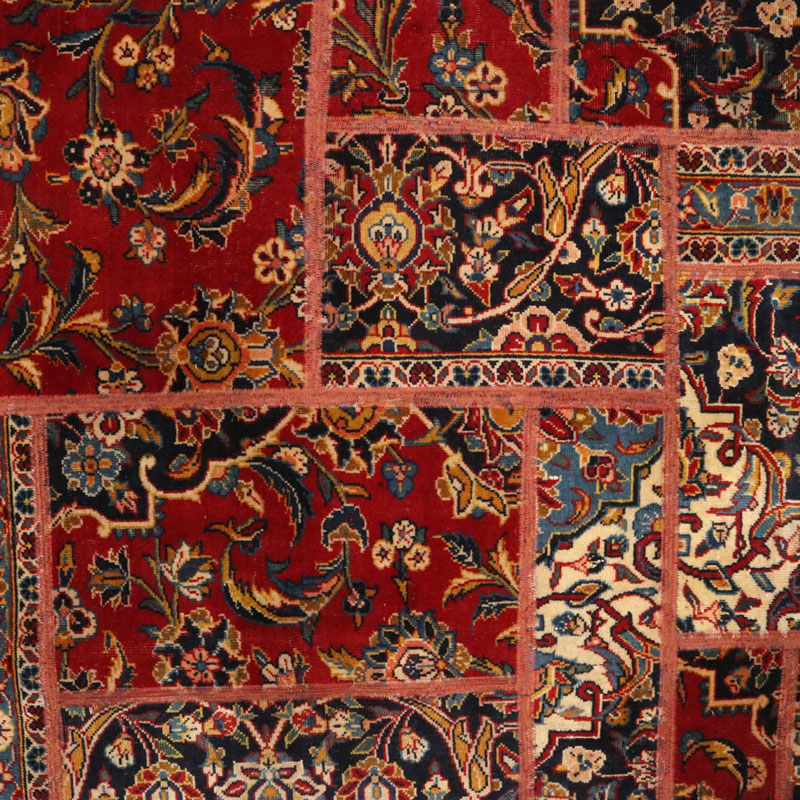 قالیچه چهل تیکه دوزی شد ه دست بافت با مساحت 3.1 متر مربع و رنگ حاشیه و متن الوان با وزن 10.87کیلوگرم میباشد.