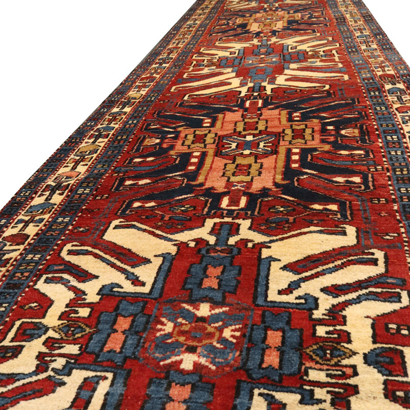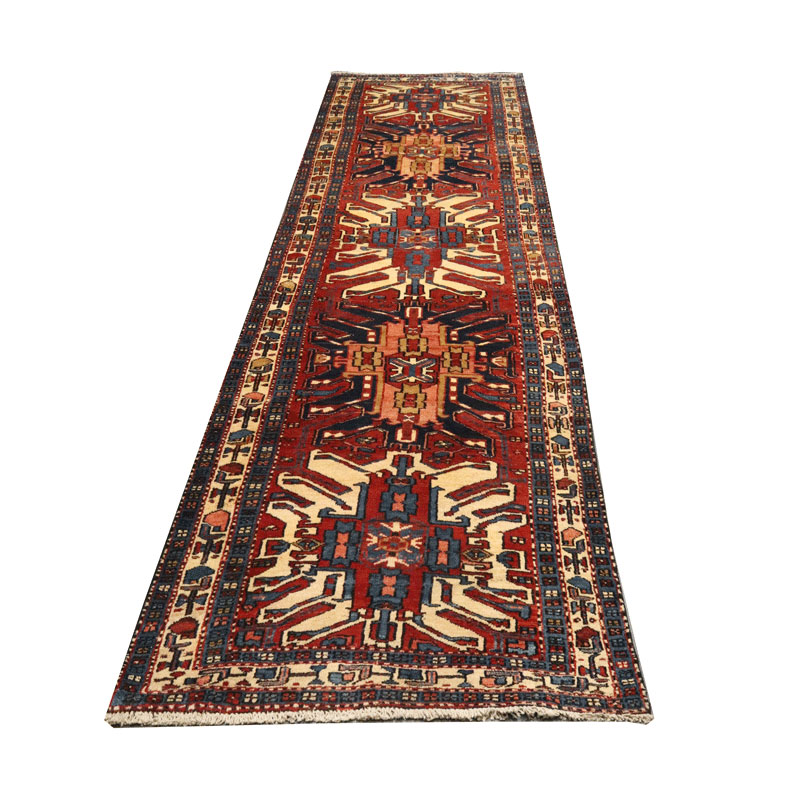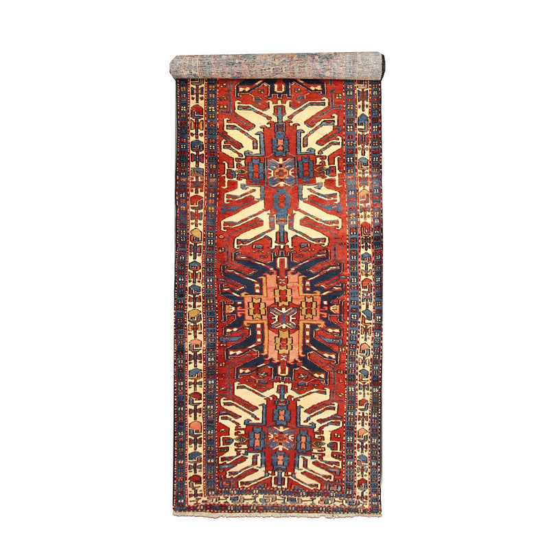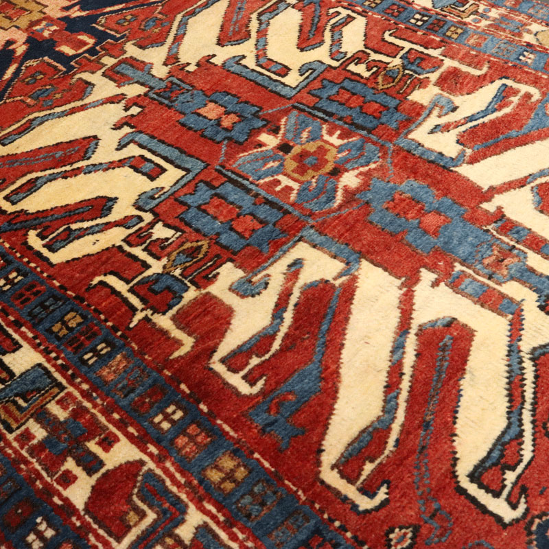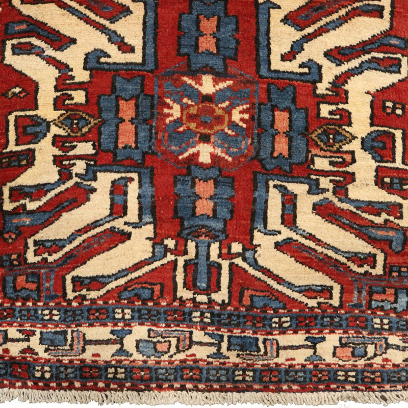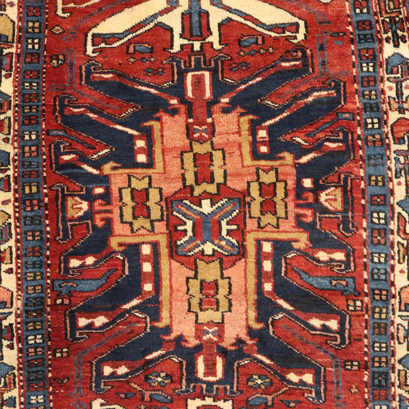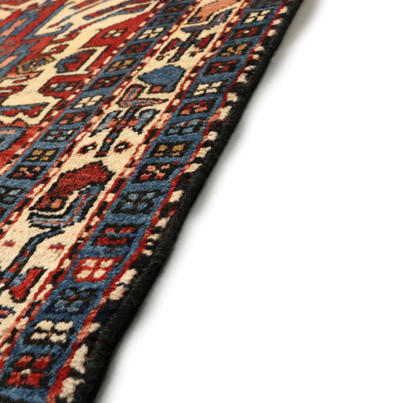 با رنگ متن لاکی و حاشیه کرم و تار و پود آن از جنس پشم و کتان خالص و طبیعی است .
