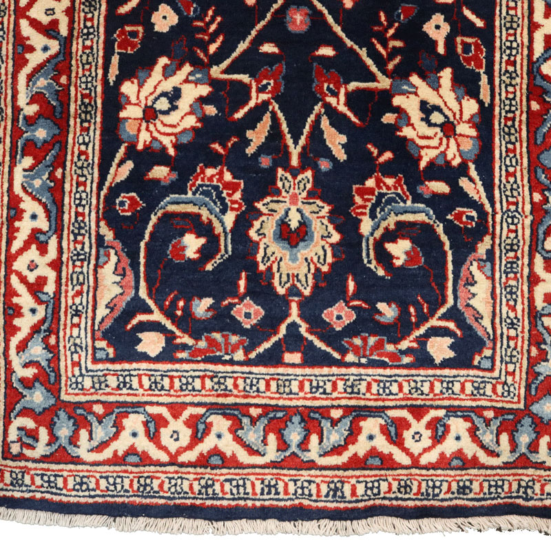 رنگ زمینه این کناره سرمه ای و حاشیه آن لاکی و از جنس تار و پود آن از پشم و کتان خالص است.