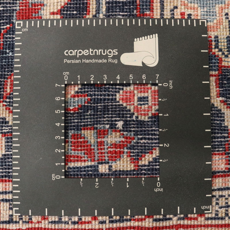 کناره دسبافت ساروق با مساحت 3.52 مترمربع با طرح اسلیمی ترنجی و وزن 12.34 کیلوگرم به شکل مستطیل است.