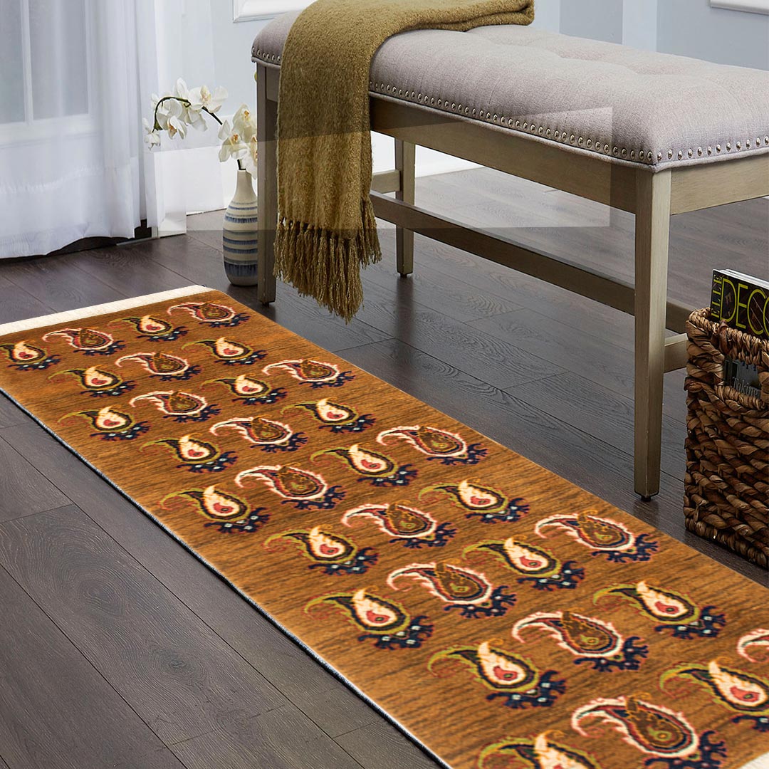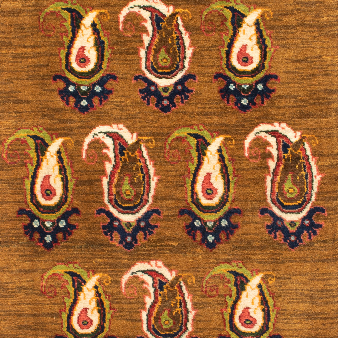 کناره دستبافت قشقایی(52×180)سانتیمتر , به طرح بوته جقه و با گره ی ترکی .