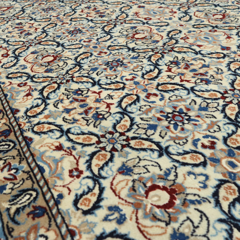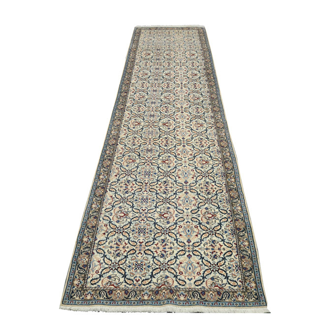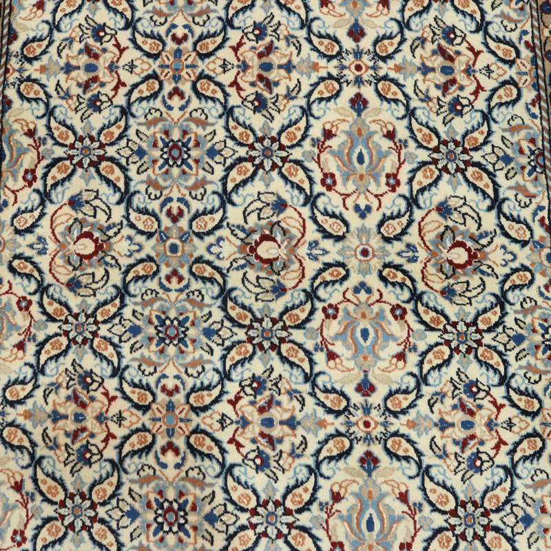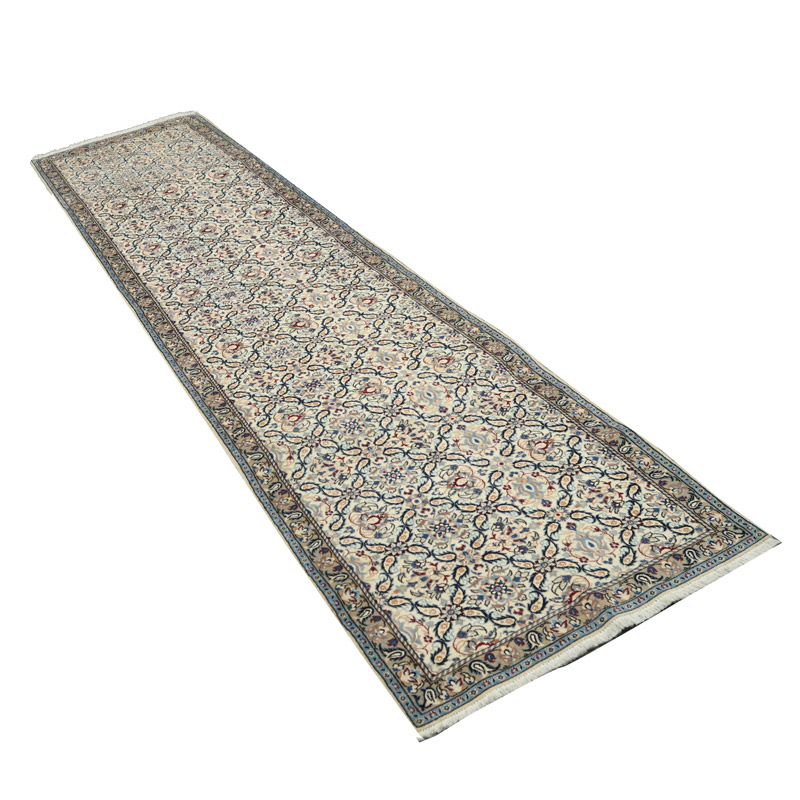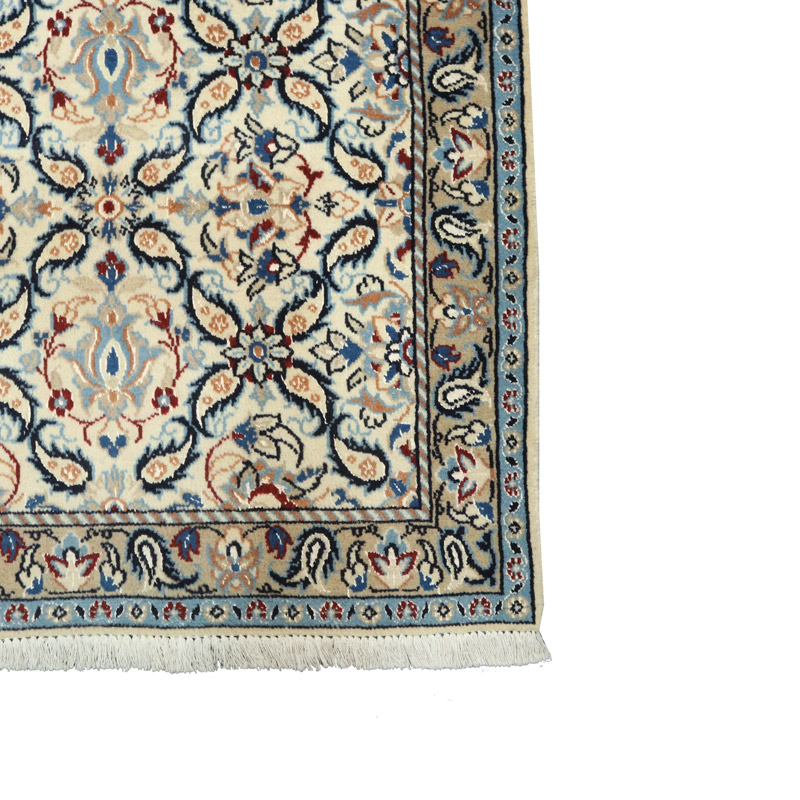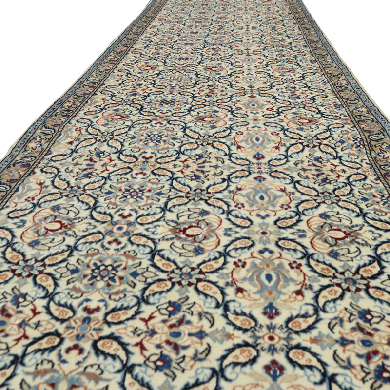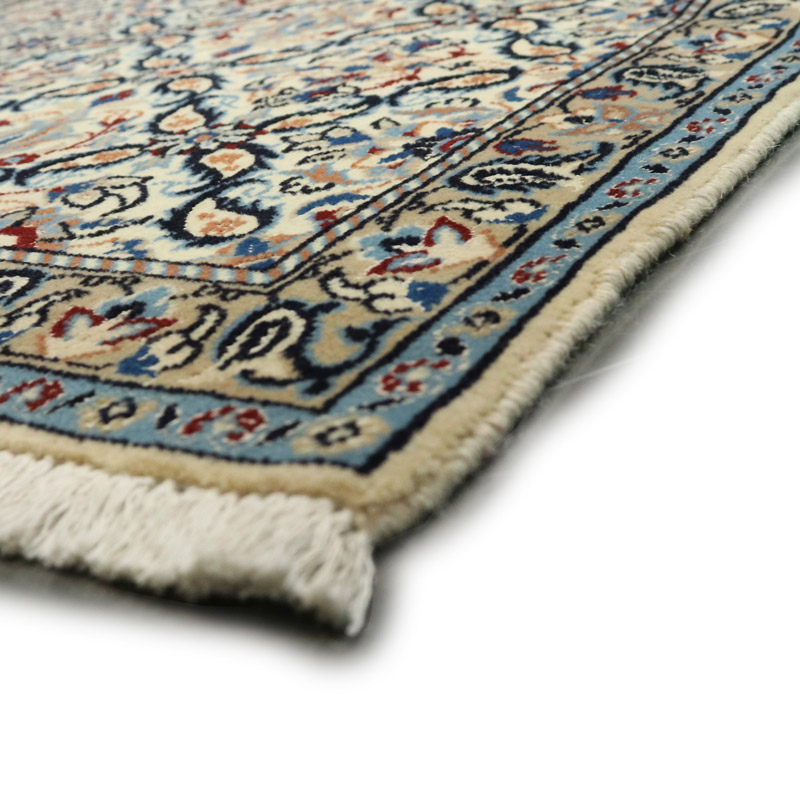 کناره دستبافت نائین 9 لا(87×387) سانتیمتر با رنگ زمینه کرم و حاشیه کرم با ضخامت 1 میلیمتر و مساحت 3.36 مترمربع است.