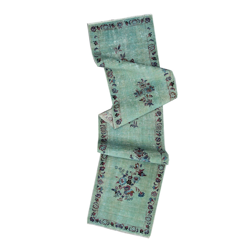 کناره دستبافت وینتیج فیروزه ای (81×372) سانتیمتر