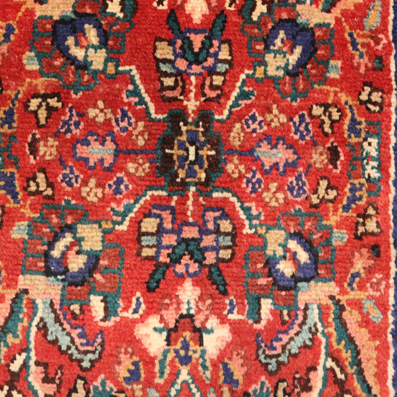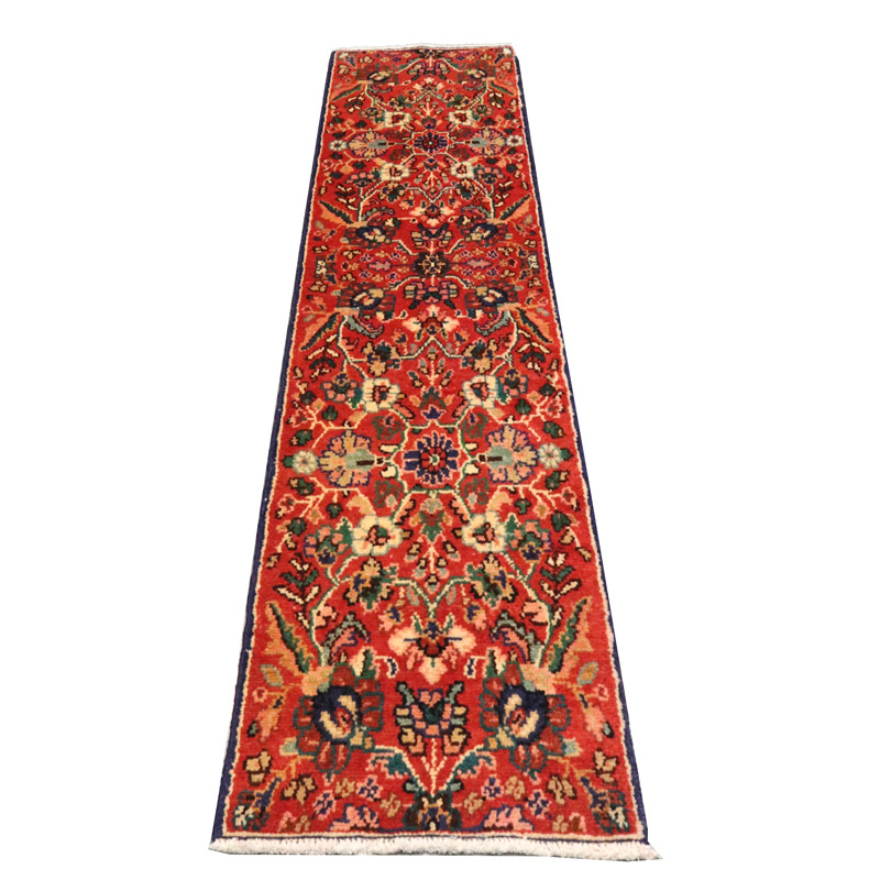 کناره دستبافت (52×231) سانتیمتر که رنگ زمینه و حاشیه آن لاکی با مساحت 1.2 متر مربع و ضخامت 2 میلیمتر است.