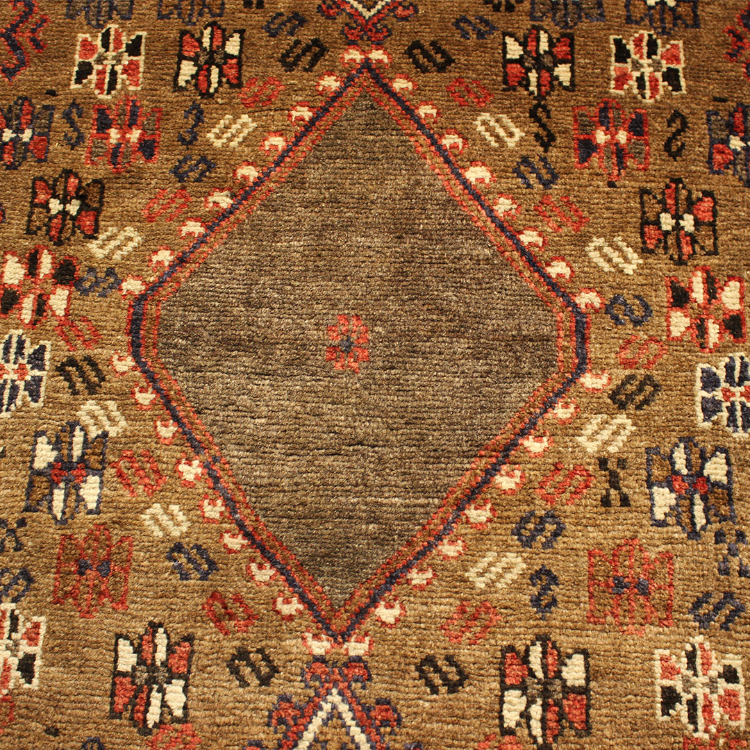 گبه دستبافت 1339- با نقشه ترنجی هندسی به شکل مستطیل ودر ابعاد 193 سانتیمترمربع و عرض 91 سانتیمترمربع بافته شده است.