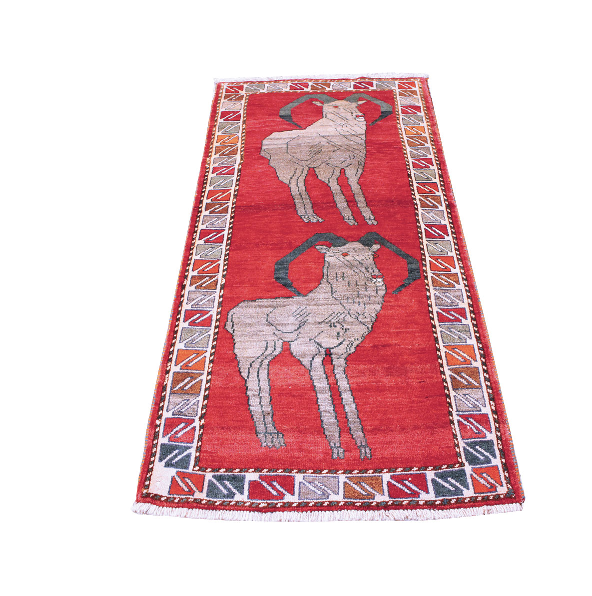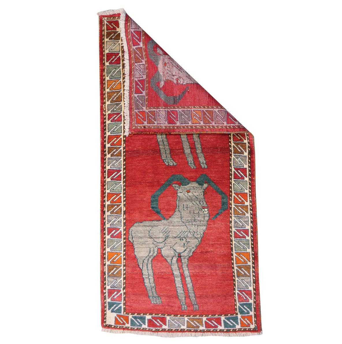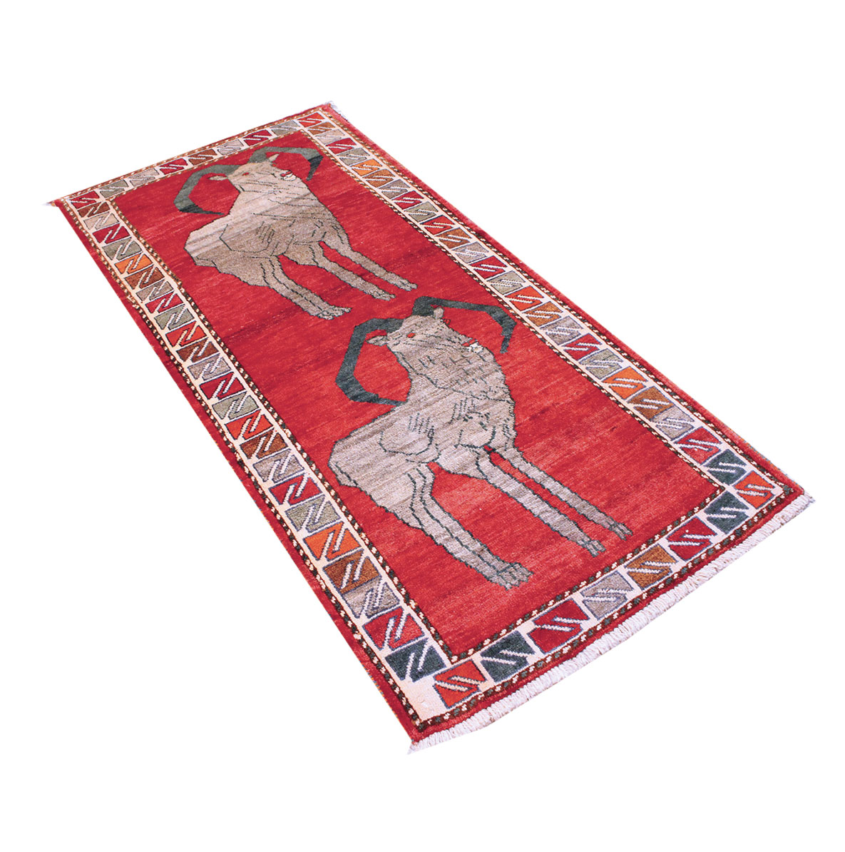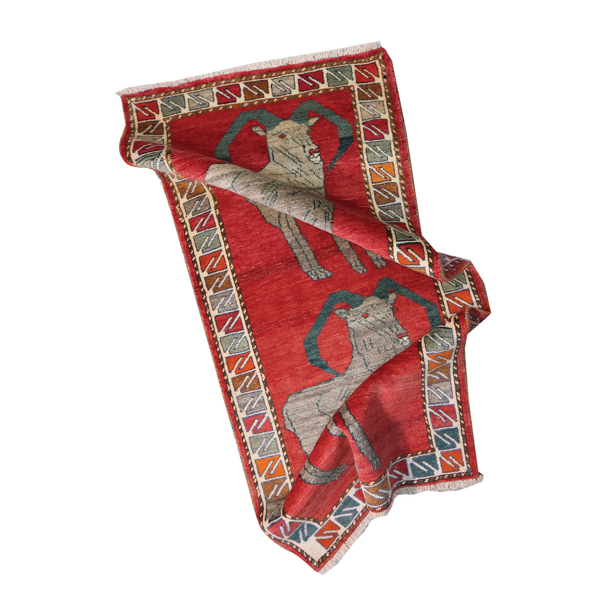 کد گبه دستبافت :1335-گبه دستبافت با نقشه تصویری ذهنی بافت به شکل مستطیل ودر ابعاد 188 سانتیمترمربع و عرض 94 سانتیمترمربع بافته شده است.