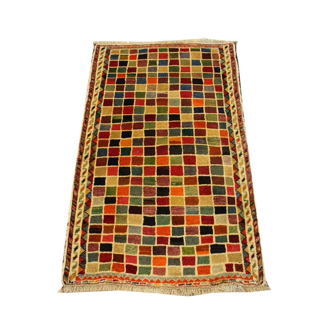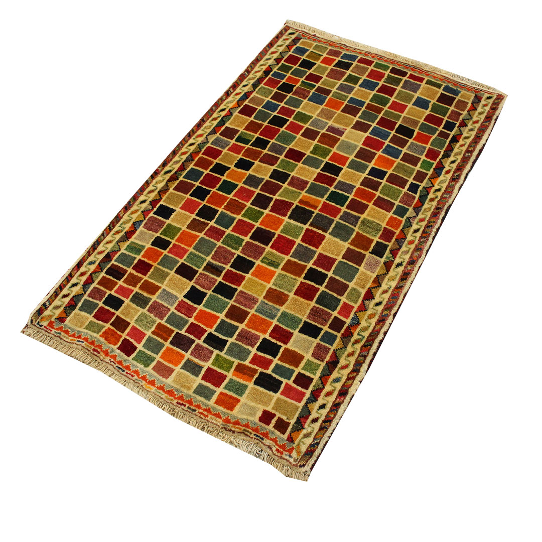 کد گبه:3277-گبه دسنبافت به شکل مستطیل ودر ابعاد: 129سانتیمترمربع و عرض:76 سانتیمترمربع بافته شده است،جنس چله گبه از پشم و جنس پودها از پشم میباشد ،رنگها گیاهی و ثابت است در اثر شستشو دچار تغییر رنگ و پس دادن و پخش شدن رنگ در گبه نمیشود،مساحت که گبه در منزل شما اشغال میکند 0.98متر مربع میباشد،ضخامت و قطر آن در حدود ۱۵میلی متر ودارای وزن 3.43 کیلوگرم است،در بافت گبه از نقوش ذهنی استفاده شده و طرح خاص و بی نظیر میباشد .نحوه ی رنگرزی سنتی با استفاده از رنگهای گیاهی طبیعی و ارگانیک میباشد،و همین امرگبه را خوش رنگ و باکیفیت کرده است.