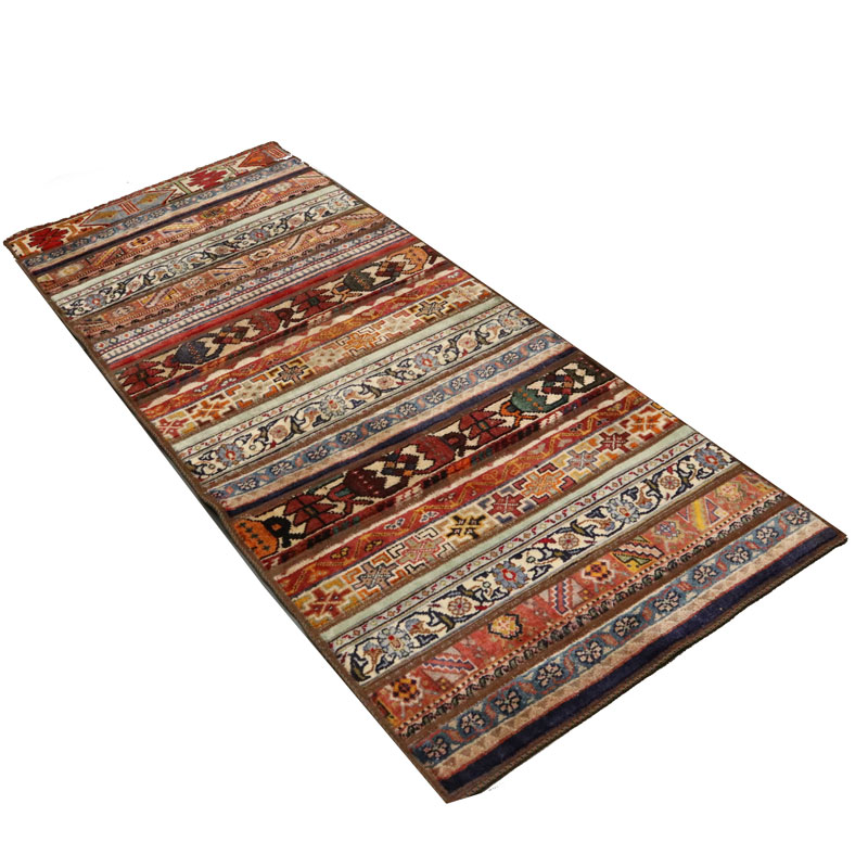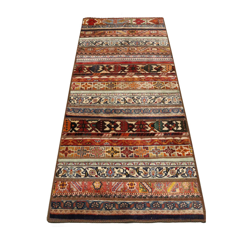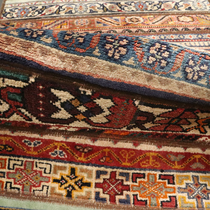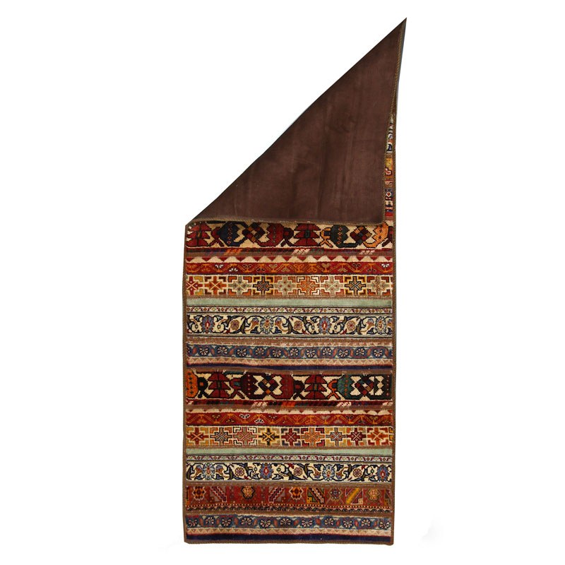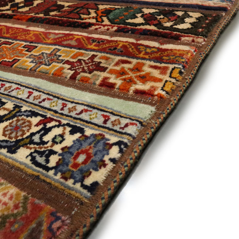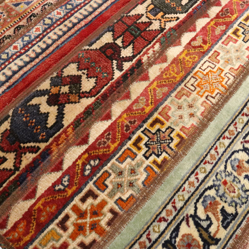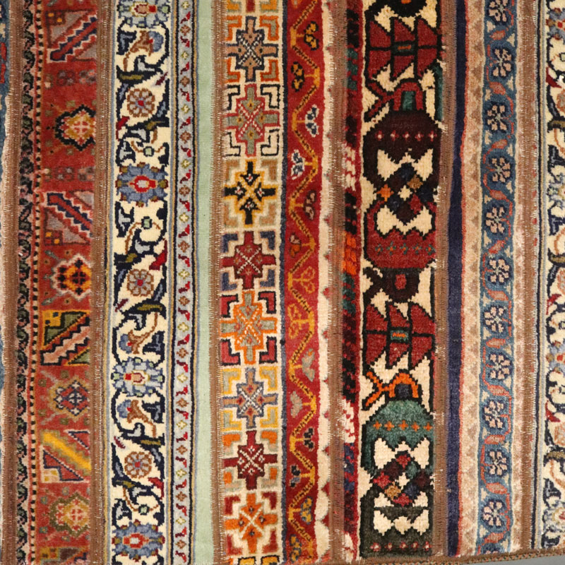 گلیم تیکه دوزی فارس با اصالت طرح محرمات و مساحت 1.5 متر مربع که از پشم و کتان بافتع شد ه است.