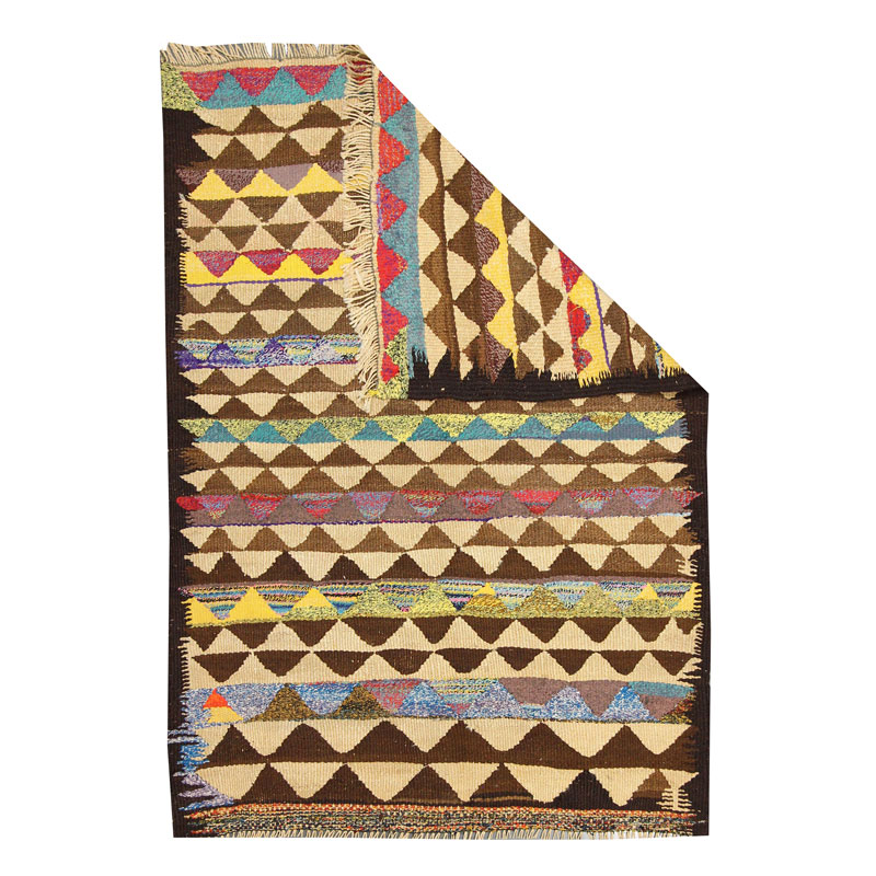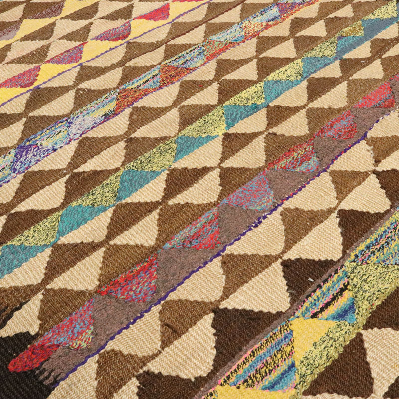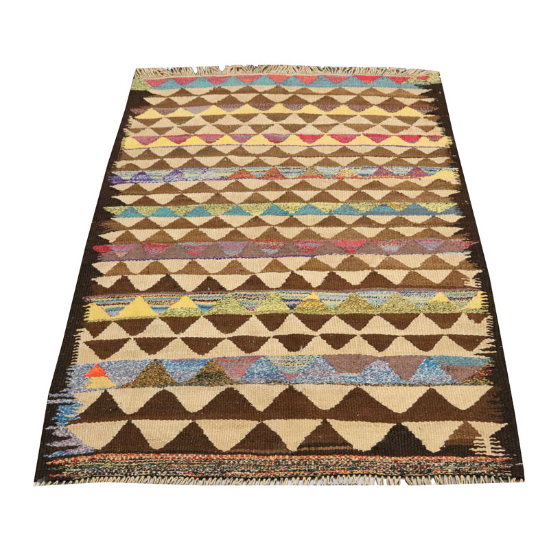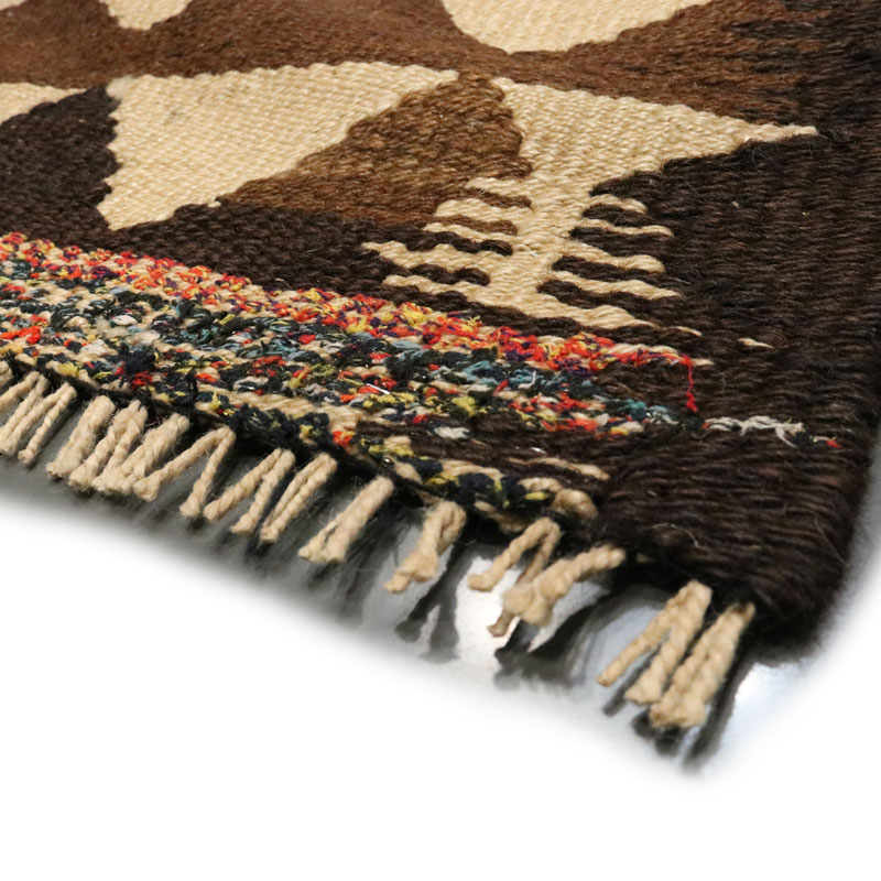 گلیم دسبافت لری با رنگ زمینه الوان و حاشیه الوان و مواد کاربردی صد در صد کتان در بافت این گلیم بکار بردند.