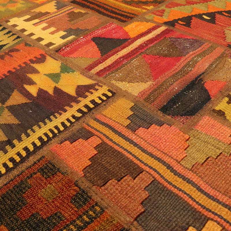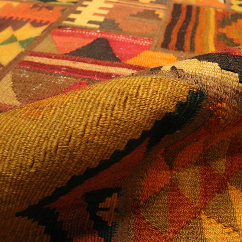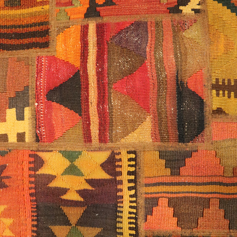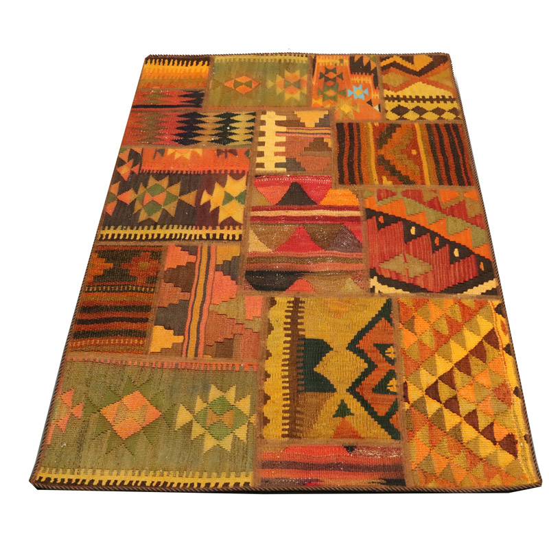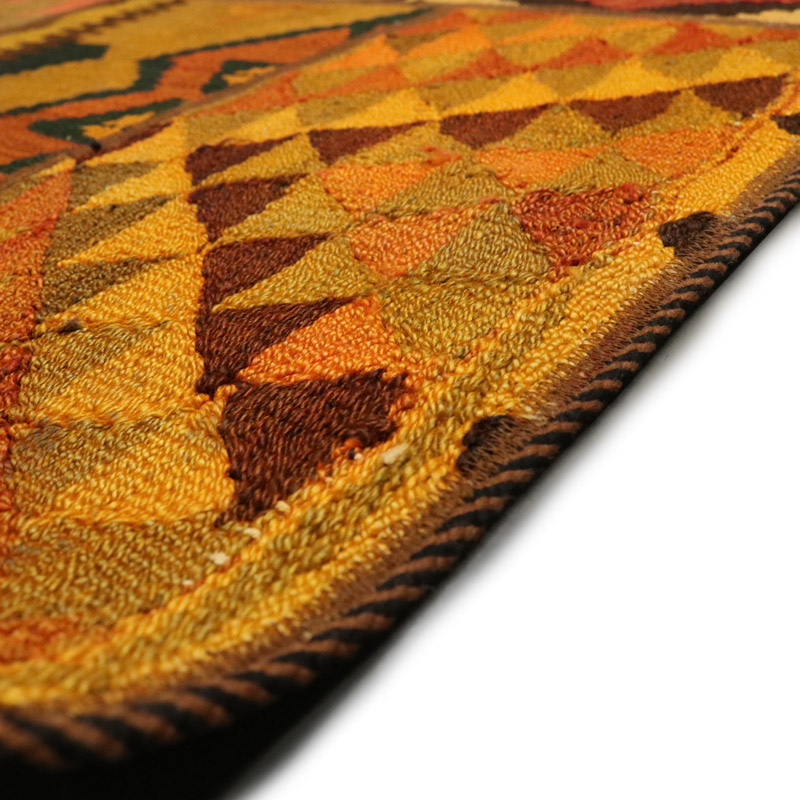 گلیم دستبافت کلاژ (110×158) سانتیمتر با رنگ زمینه و حاشیه الوان و مساحت 1.73 مترمربع و ضخامت 1 میلیمتر با طرح کلی قاب قابی است.