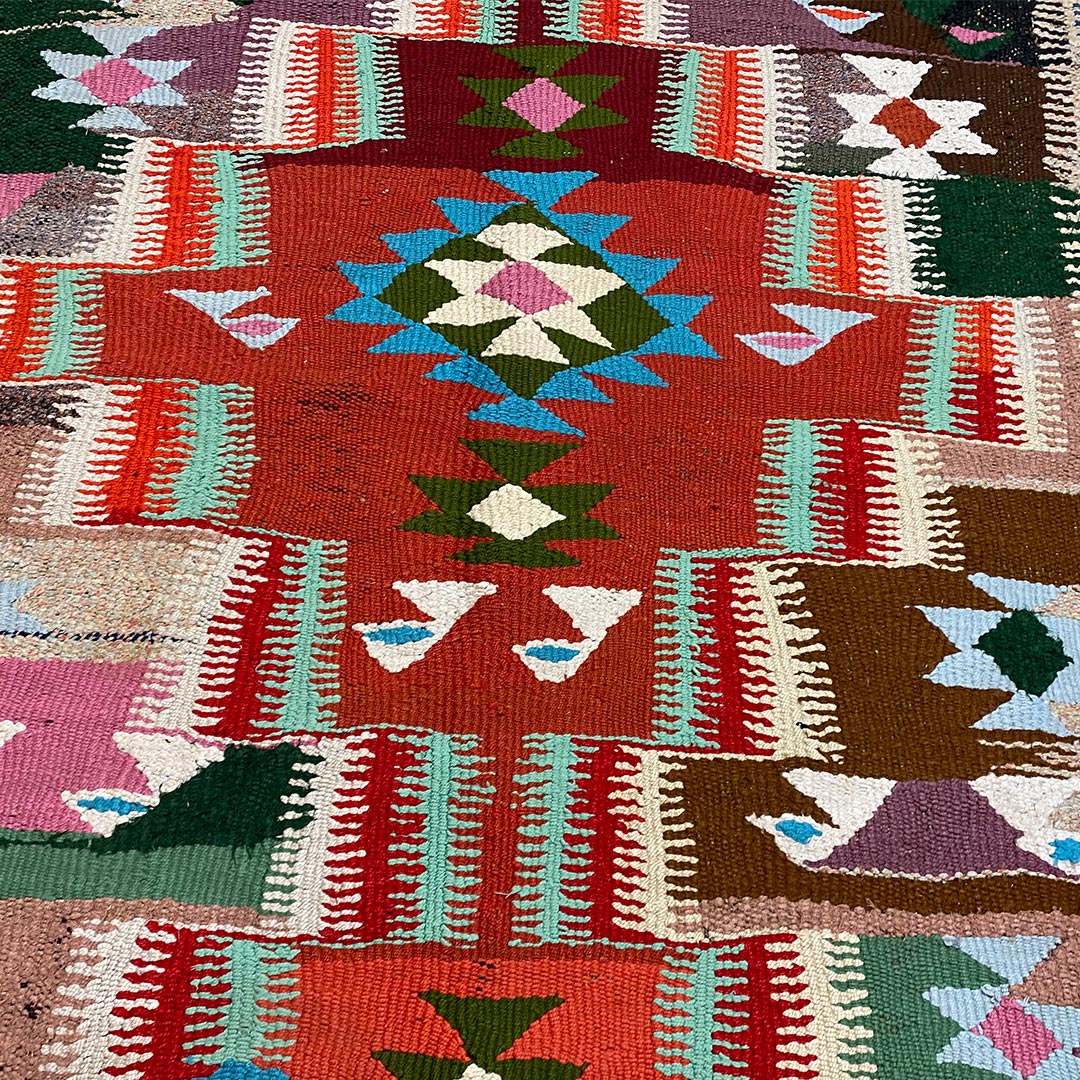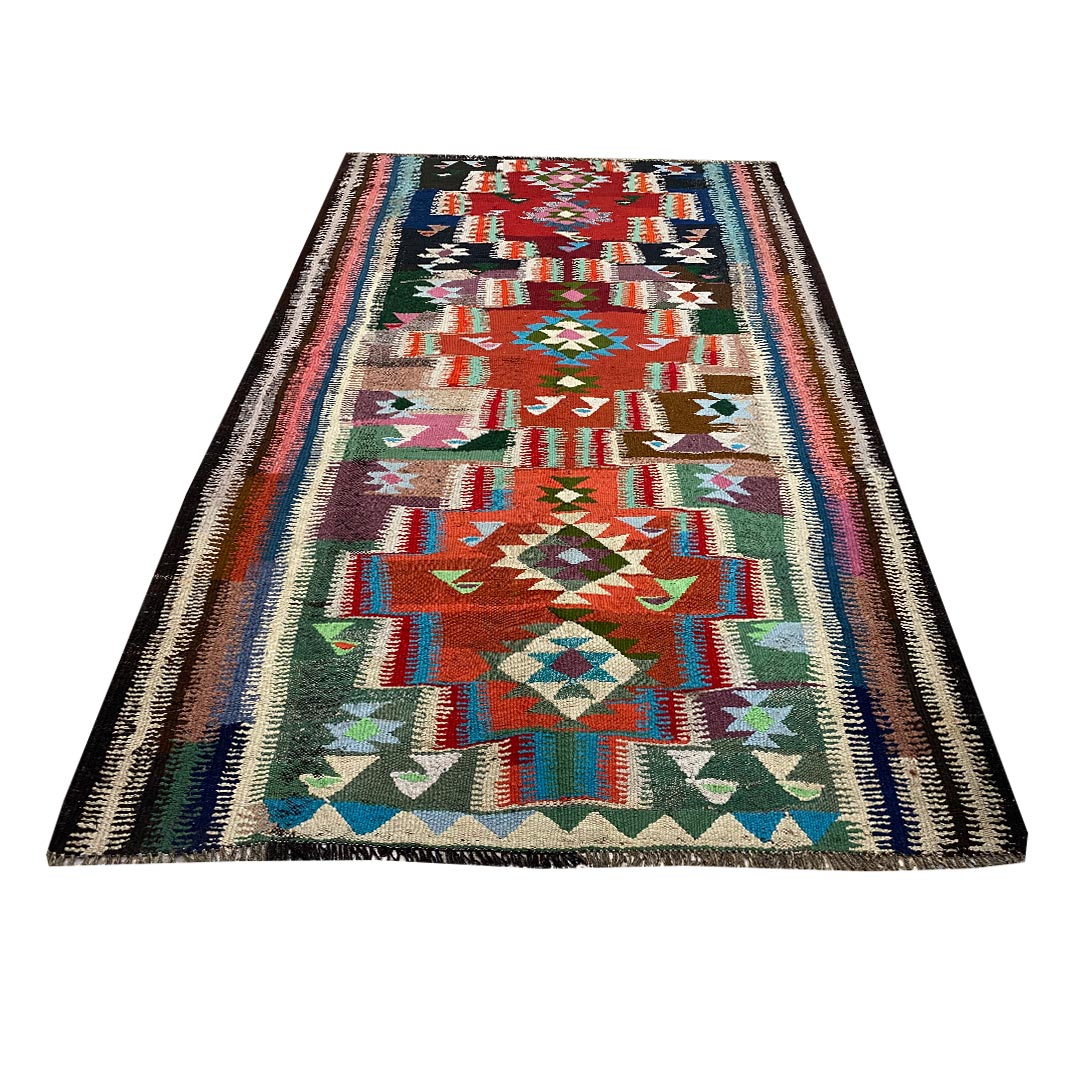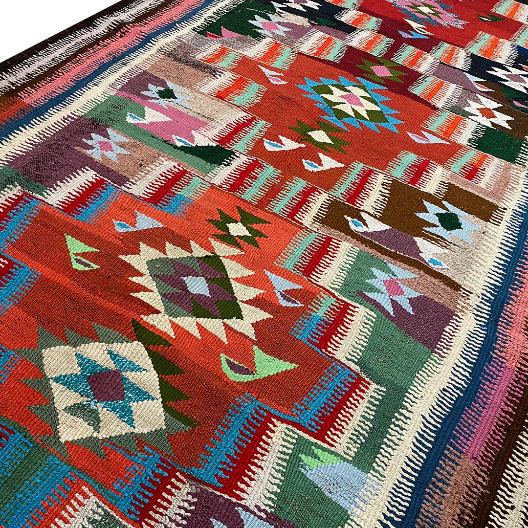 گلیم دست بافت شیراز در ابعاد: 296 سانتیمترمربع و عرض: 188 سانتیمترمربع بافته شده است.