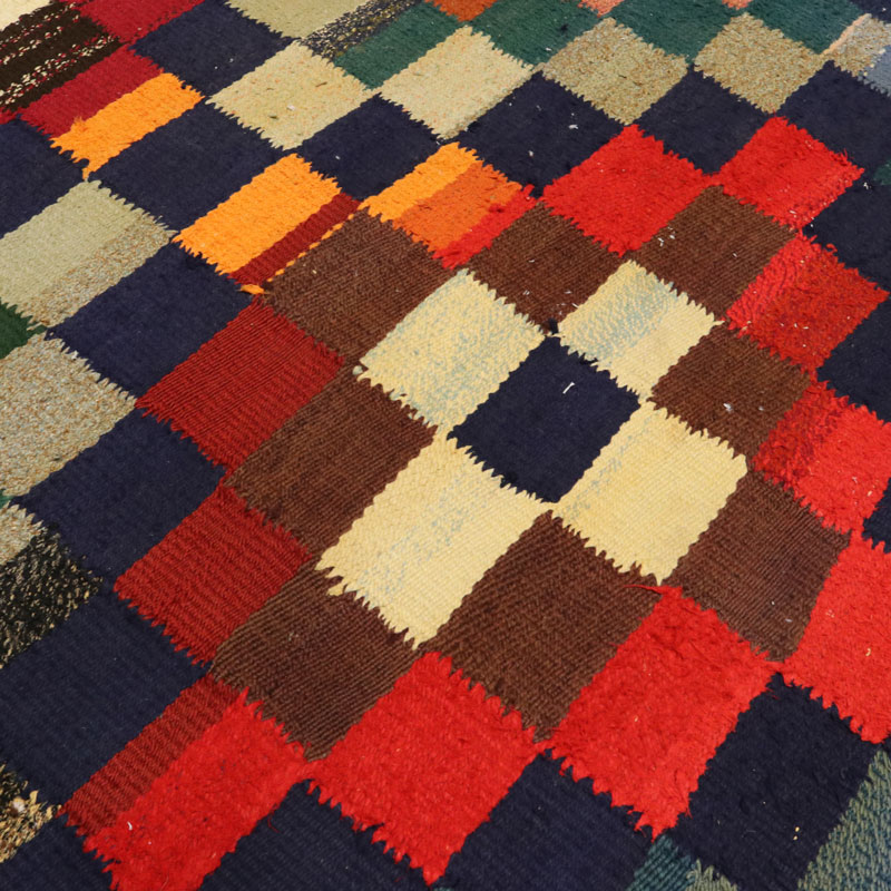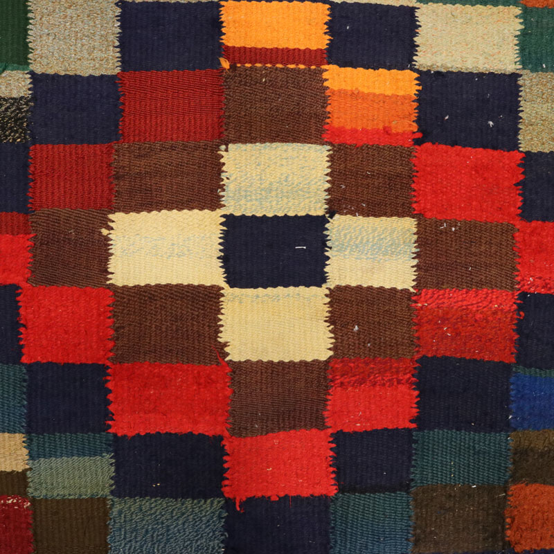 این گلیم دارای طرح شطرنجی رنگی رنگی با مساحت 1.6 متر مربع و وزن 5.6 کیلوگرم میباشد.