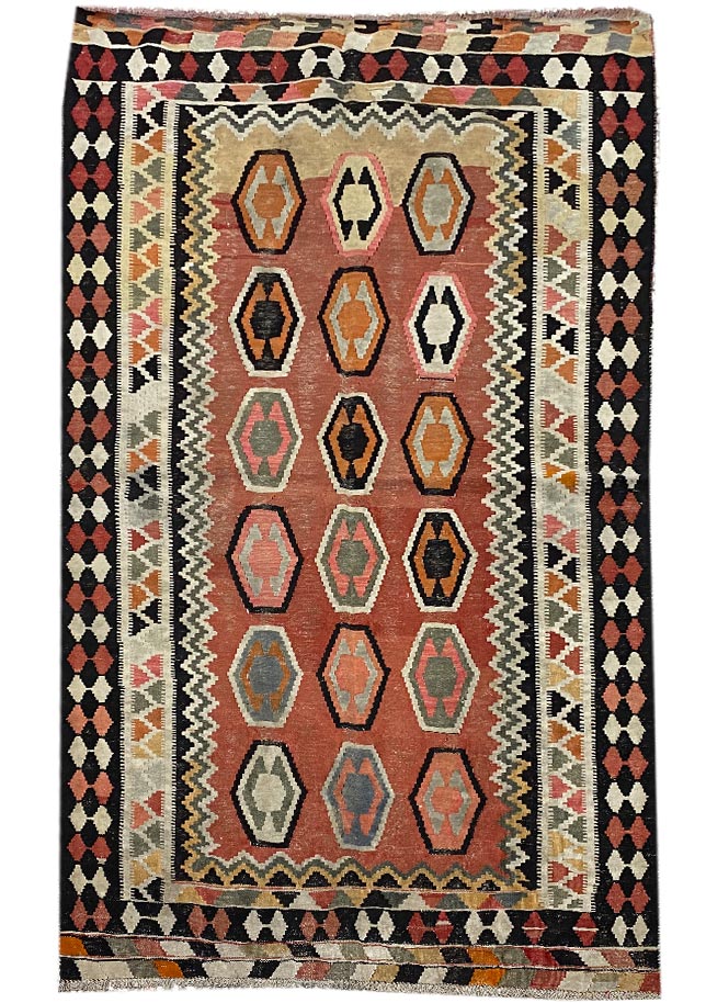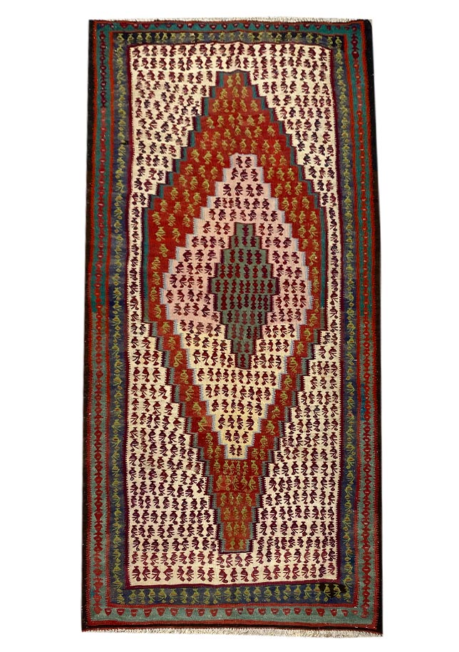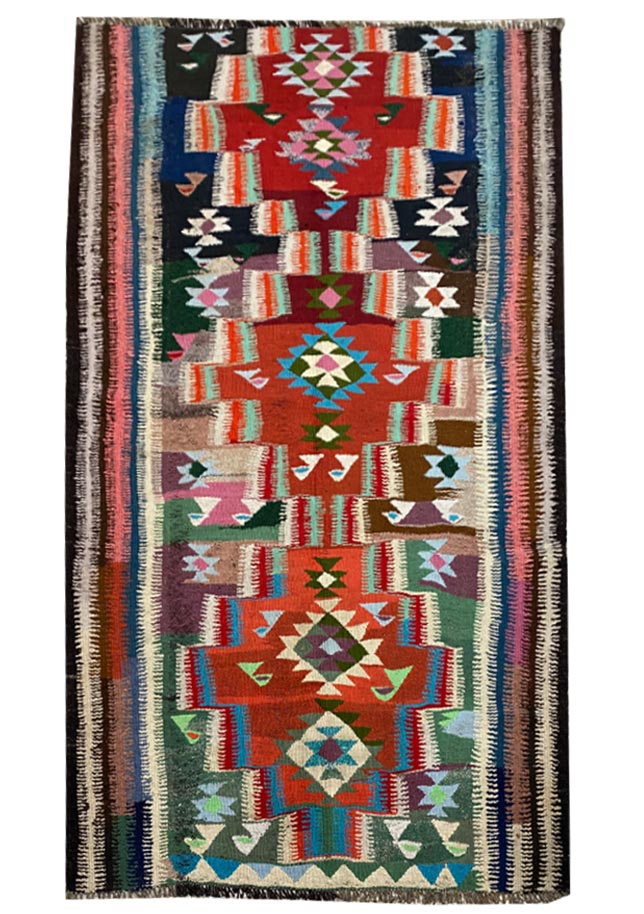 کد گلیم دستبافت :743-گلیم با نقشه ذهنی بافت هندسی به شکل مستطیل